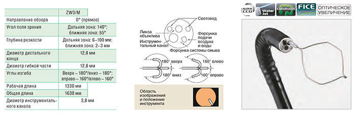 Технология WaterJet и величина инструментального канала, позволяющая использовать практически весь эндоскопический инструментарий, дают возможность отнести EC-590ZW3/M к категории универсальных эндоскопов. Все традиционные колоноскопические операции – полипэкетомия, коагуляция кровотечений, туморэктомия, лечение непроходимости – реализуются с его помощью на высоком уровне.