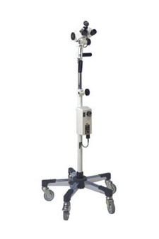 Все кольпоскопы Leisegang являются бинокулярными, т.е. врач проводит исследование, глядя через два окуляра. К составляющим кольпоскопа относятся оптическая головка, штатив и колесное основание.