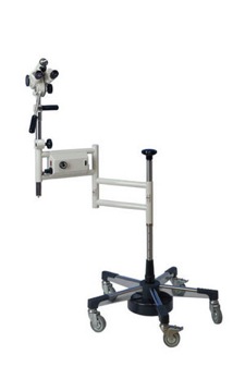В условиях ограниченного пространства кольпоскоп может крепиться непосредственно к гинекологическому креслу посредством специального держателя, в этом случае колесное основание не входит в состав кольпоскопа. Держатели поставляются производителями гинекологических кресел.
