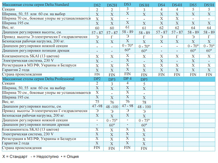Компания произвела два модельных ряда массажных столов: Professional и Standard.