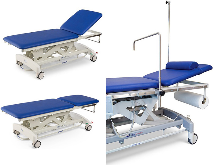 Бюджетная версия с электрической регулировкой высоты посредством пульта управления, колеса с индивидуальной блокировкой, ложе из 2-х секций, электрическая установка необходимого угла наклона спинной секции, держатель для бумажных простыней. |