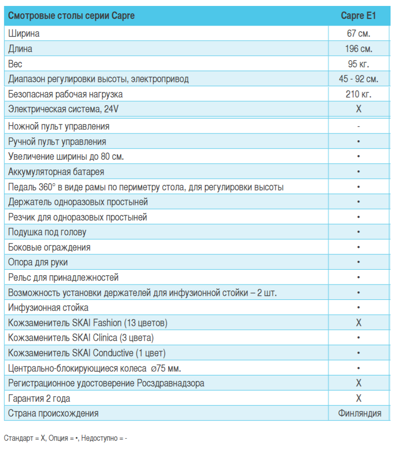 Смотровой стол Capre Е1 от финского производителя Lojer – функциональность и дизайн конструкции позволяют отнести модель к столам универсального применения. Благодаря исключительно широкому диапазону регулировки вверх/вниз и бесшумному электродвигателю стол идеально подходит для смотровых помещений небольших размеров, медицинских кабинетов в школах, на производстве и т.п.