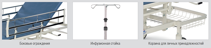 - безопасная транспортировка пациента и удобный доступ для медицинского персонала за счёт амортизирующих бамперов и конструкции боковых ограждений;