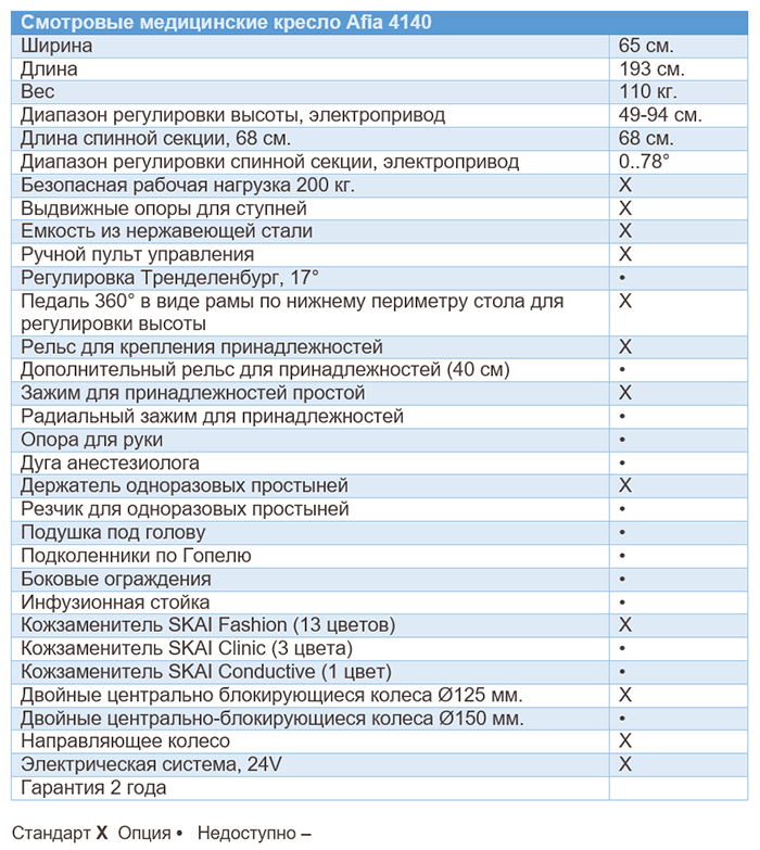 | 4140T-M | Конструкция модели Afia 4140-M, дооснащённая механизмом для положения Тренделенбург. |
